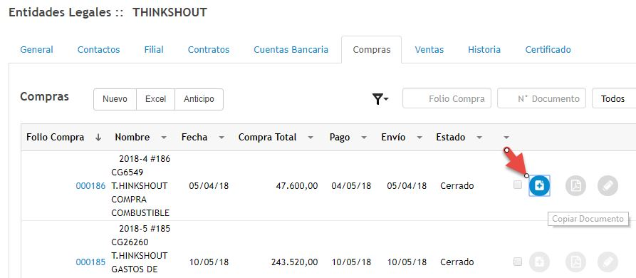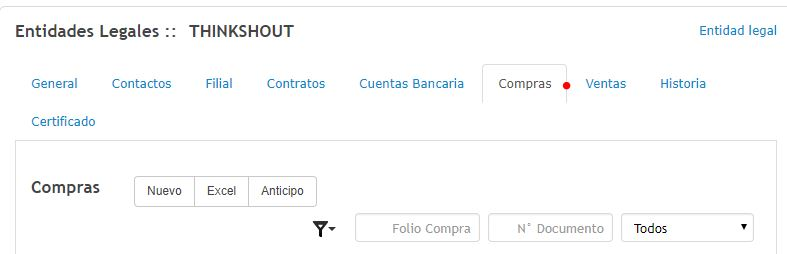 4. Seleccionar la entidad legal deseada y hacer click en Compras