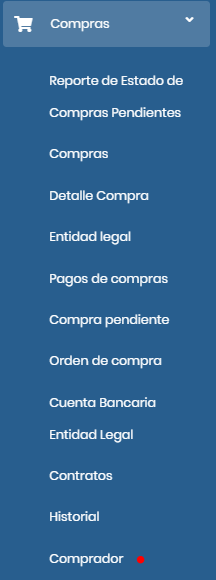 1. Hacer clic en el menú principal y expandir el submenú de Compras. Luego hacer clic en ítem Comprador