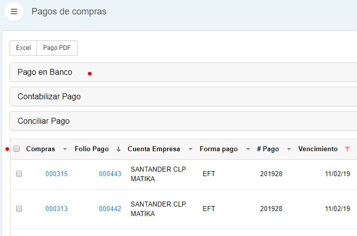 8. Luego ir a Pago de Compras donde aparecerá el anticipo como el último pago cargado. Subir el pago al banco.