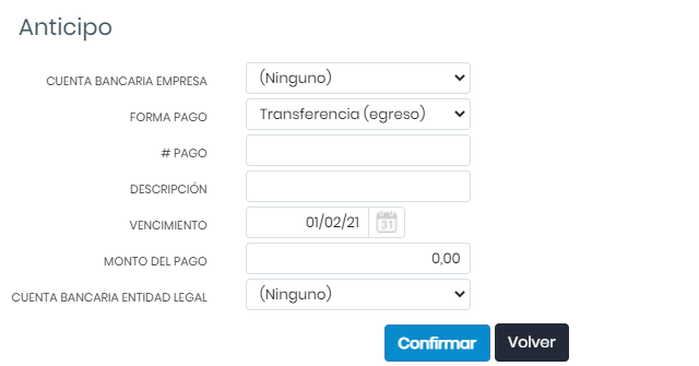 - Es muy importante que se encuentre creada la cuenta bancaria de la entidad legal antes de confirmar