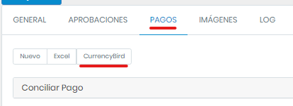 4.- Ir a la pestaña "Pagos" y hacer clic en botón "Curency Bird"