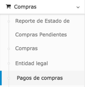 - Hacer clic en el menú principal y expandir el submenú de Compras. Luego hacer clic en ítem Pago de Compras