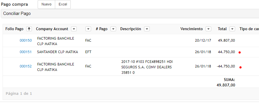 - Rebajar traspaso agregando un nuevo pago de tipo factoring en ese mismo folio con signo negativo.