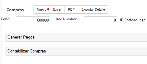 - Ingresar en Compras y hacer clic en nuevo y Comprobante de Gasto