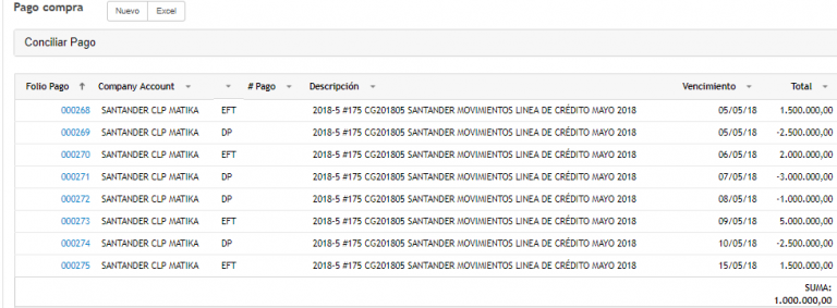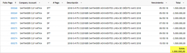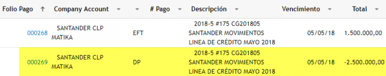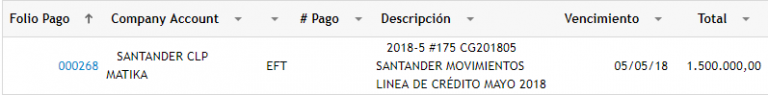 Ahora debemos entrar en el folio que recién hemos creado, presionar la casilla Pagos y comenzar a ingresar los movimientos de la Línea de Crédito.