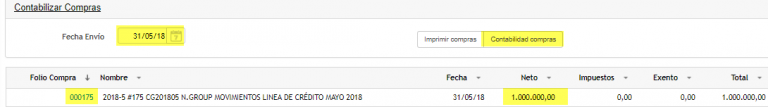 Seleccionamos la fecha, y luego Contabilidad Compras.
