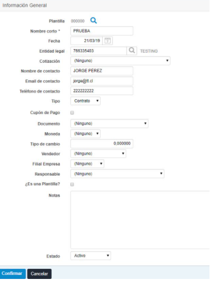 En el campo “Tipo”, seleccionar el valor “Contrato”