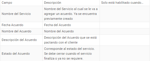 Cómo ingresar los Acuerdos de un Servicio