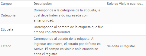 Para poder asociar una etiqueta a un servicio es necesario haber creado previamente una categoría de Etiqueta y una Etiqueta