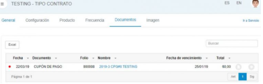 Por defecto, el sistema genera automáticamente los cupones de pago de un servicio de tipo contrato dependiendo de la frecuencia configurada, sin embargo es posible generarlos manualmente como se indica a continuación: