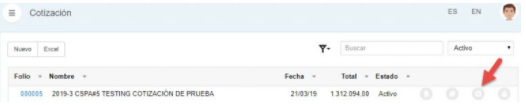 Se genera en la sección Cotización a partir de los que ya han sido creados. Haciendo clic en el botón (+) ubicado a mano derecha de la cotización seleccionada